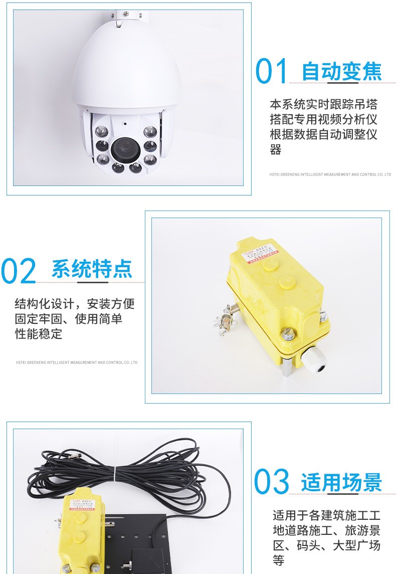 产品采用高清红外摄像机、通过对塔机变幅和起升高度实时监测,自动计算幅度