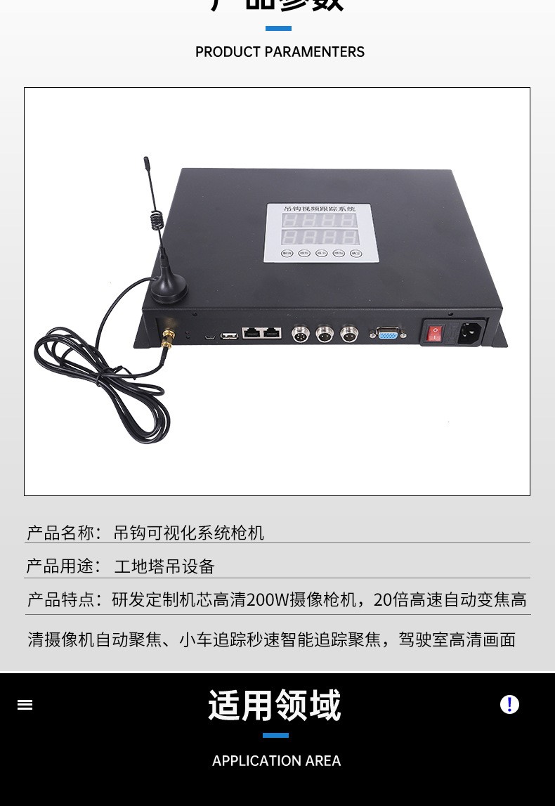 塔吊吊钩可视化系统可以很好地消除塔吊司机的操作视觉盲区,在很大程度上提高作业的安全性。在保障建筑施工安全的同时还能有效的提升塔吊作业效率。