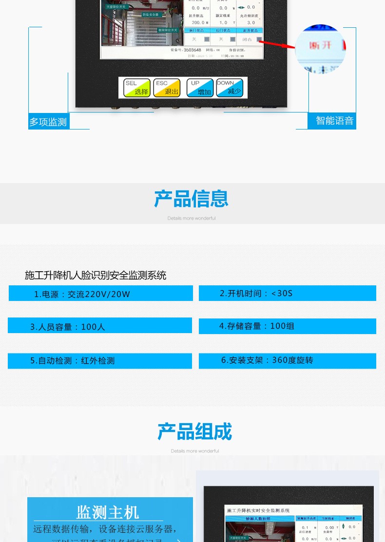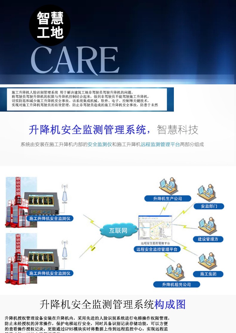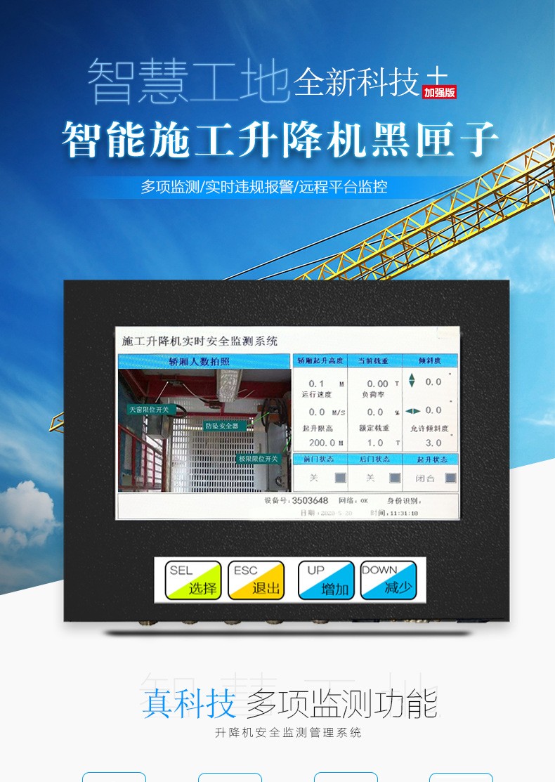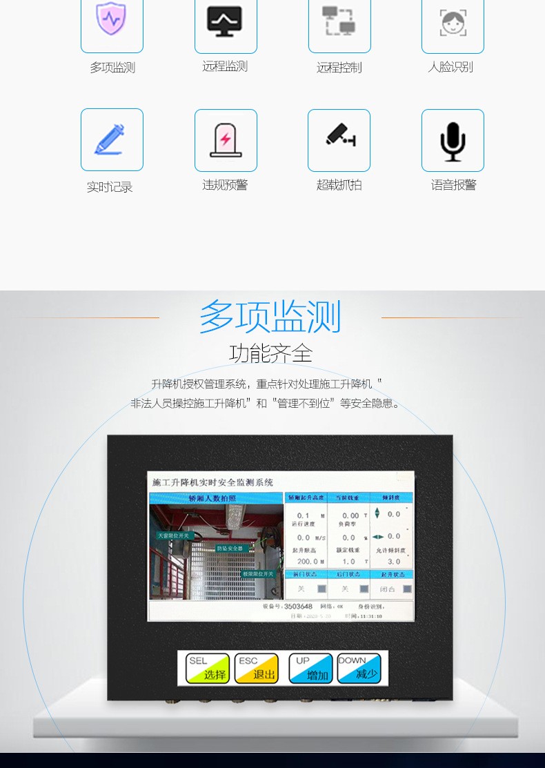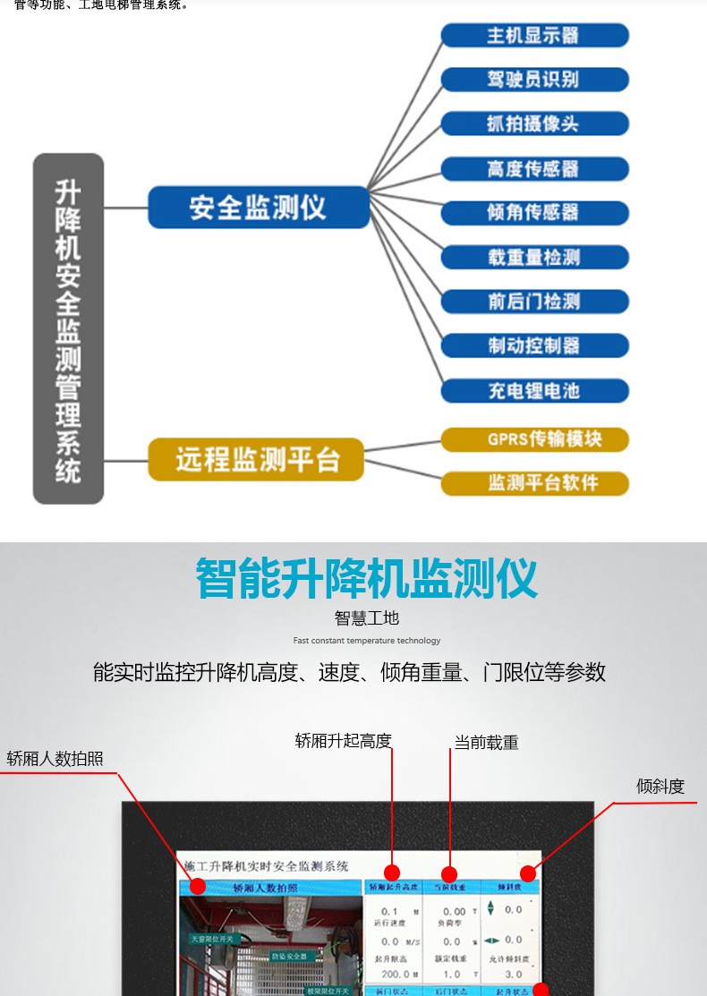 施工升降机监测系统是符合施工升降机国家标准GB/T10054-2005,可以实时采