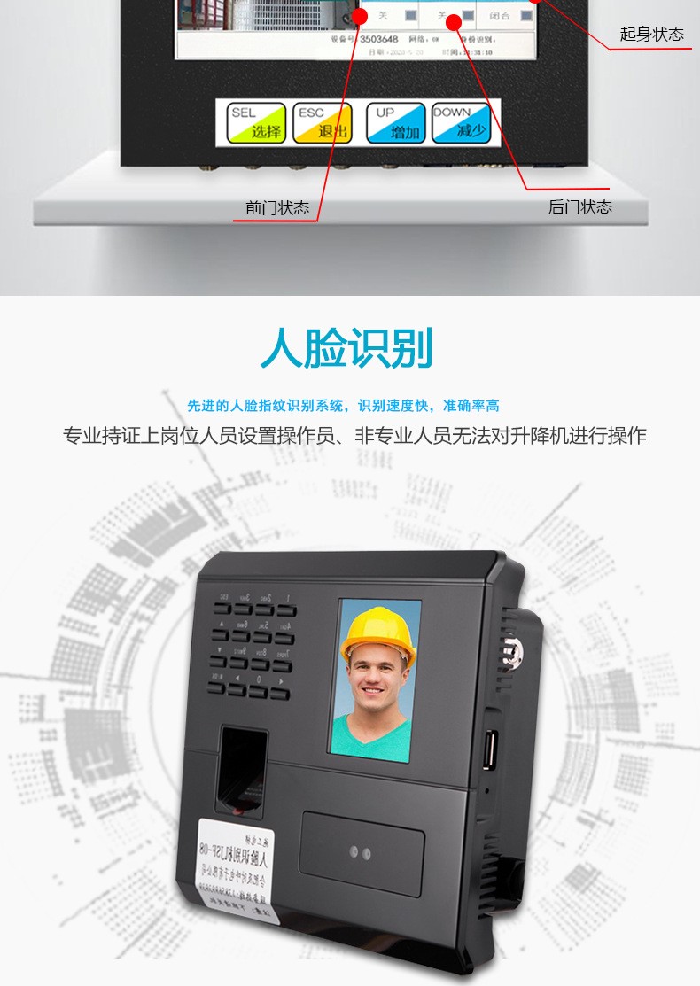 驾驶员身份认证信息。通过主机处理器进行计算和分析,能够对施工升降机冲顶、