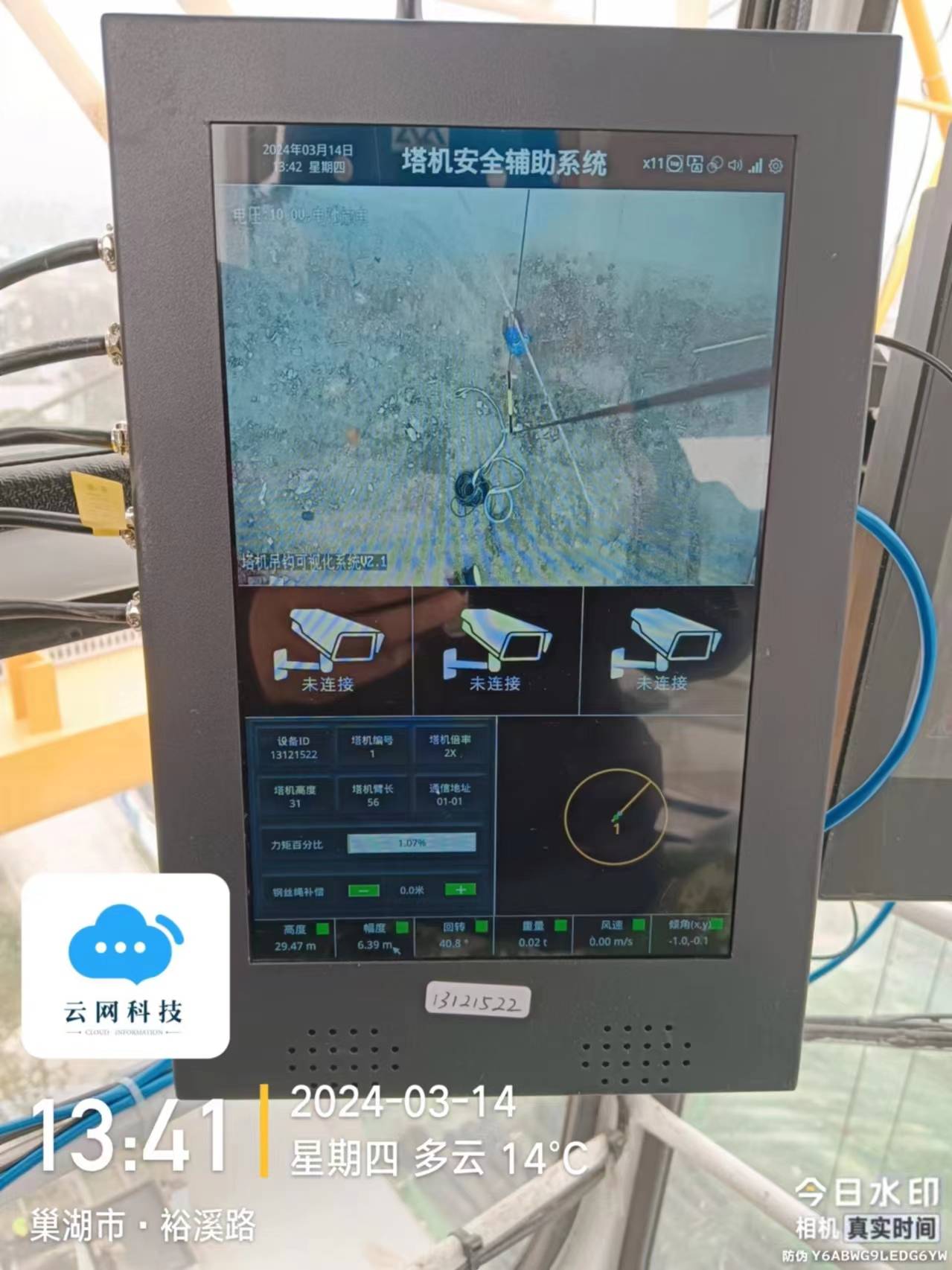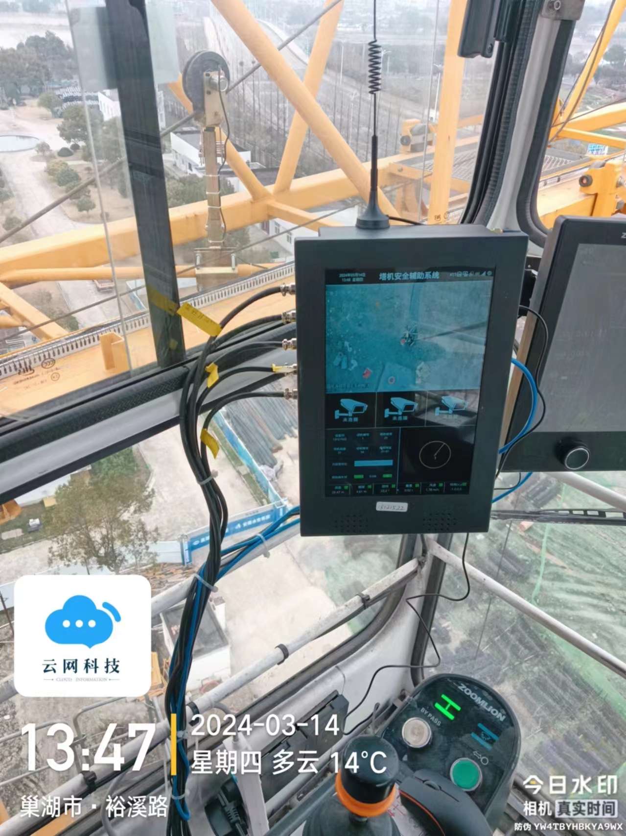 安徽水安承建巢湖城乡供水一体化项目塔吊防碰撞可视化一体机安装完成